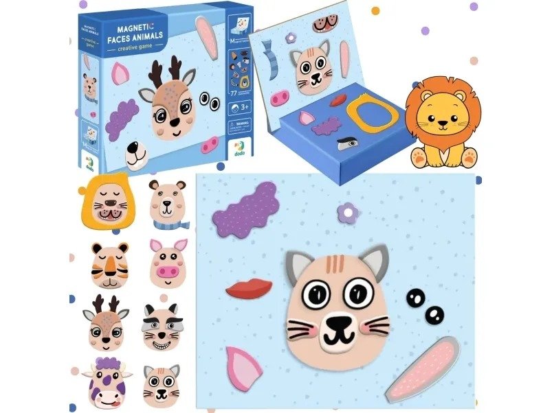 Μαγνητικό παιχνίδι με πρόσωπα ζώων για δημιουργικό παιχνίδι και εκμάθηση συναισθημάτων και χαρακτηριστικών.