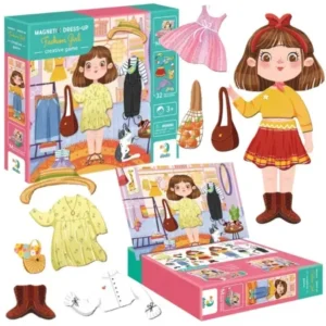Το μαγνητικό παιχνίδι Dress Up Fashion Girl είναι ιδανικό για παιδιά που αγαπούν τη μόδα και τη δημιουργικότητα! Με μαγνητικά κομμάτια ρούχων και αξεσουάρ, τα παιδιά μπορούν να δημιουργήσουν αμέτρητους συνδυασμούς και να φτιάξουν μοναδικά outfits, ενισχύοντας τη φαντασία και τις λεπτές κινητικές δεξιότητες.
