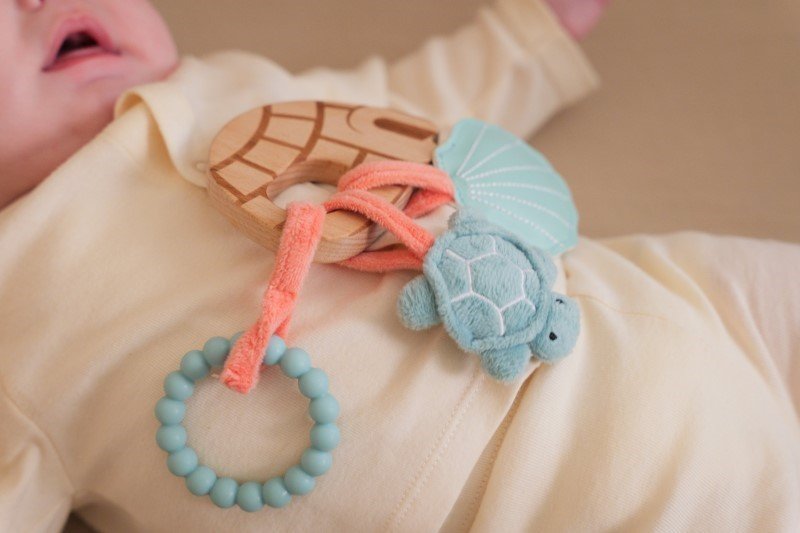 Διαφορετικές Υφές: Ο συνδυασμός από ποικίλα υλικά και υφές προσφέρει πλούσια απτικά ερεθίσματα, βοηθώντας το μωρό να αναγνωρίζει διαφορετικές επιφάνειες με τα χέρια και το στόμα.