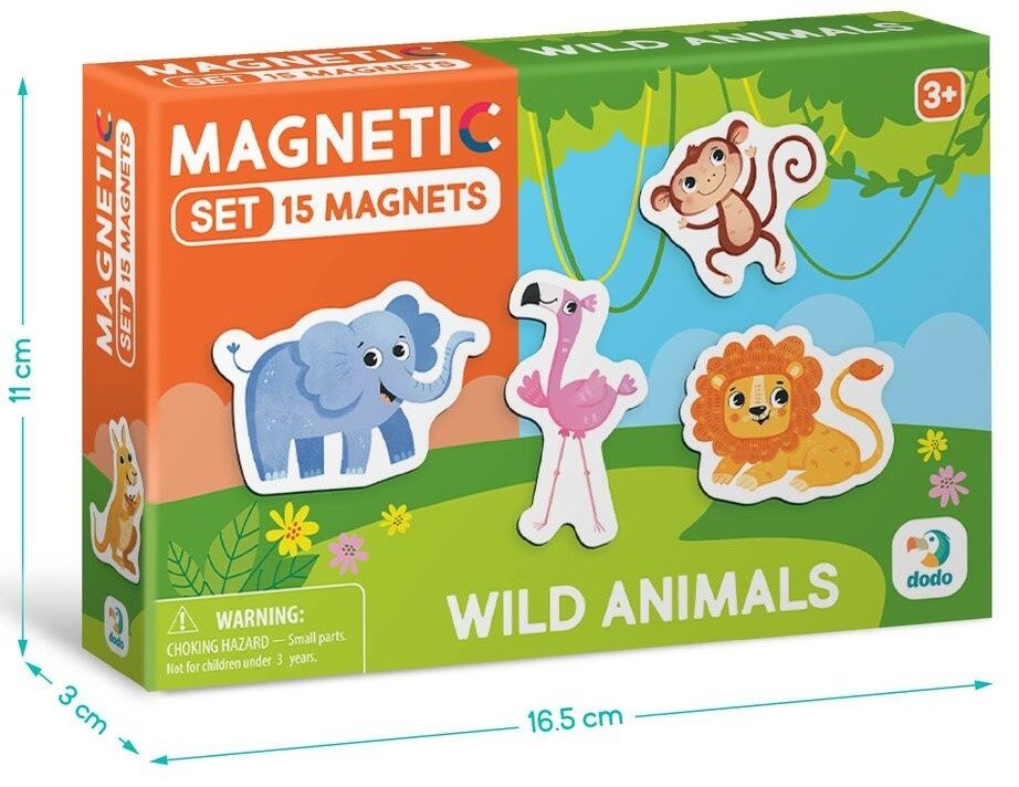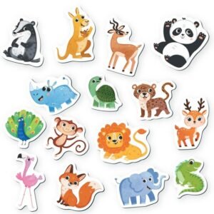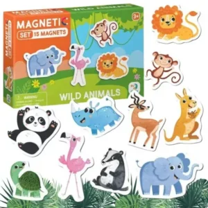 Σετ μαγνητάκια με σχέδια άγριων ζώων για διακόσμηση και οργάνωση σε μαγνητικές επιφάνειες.