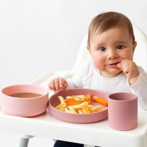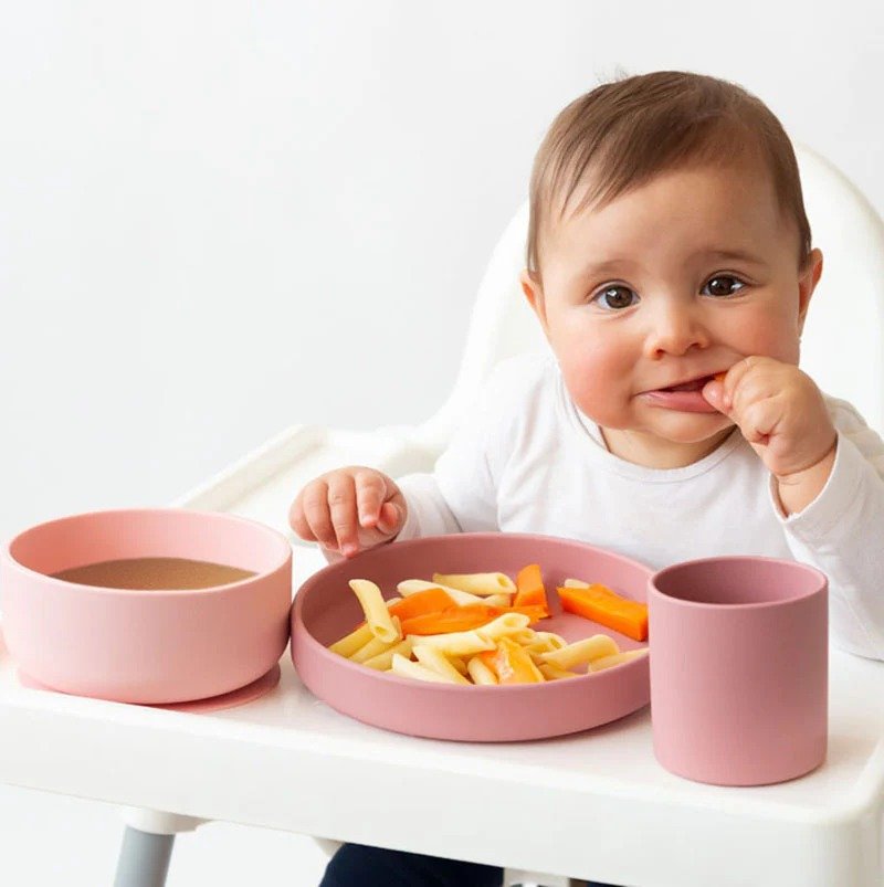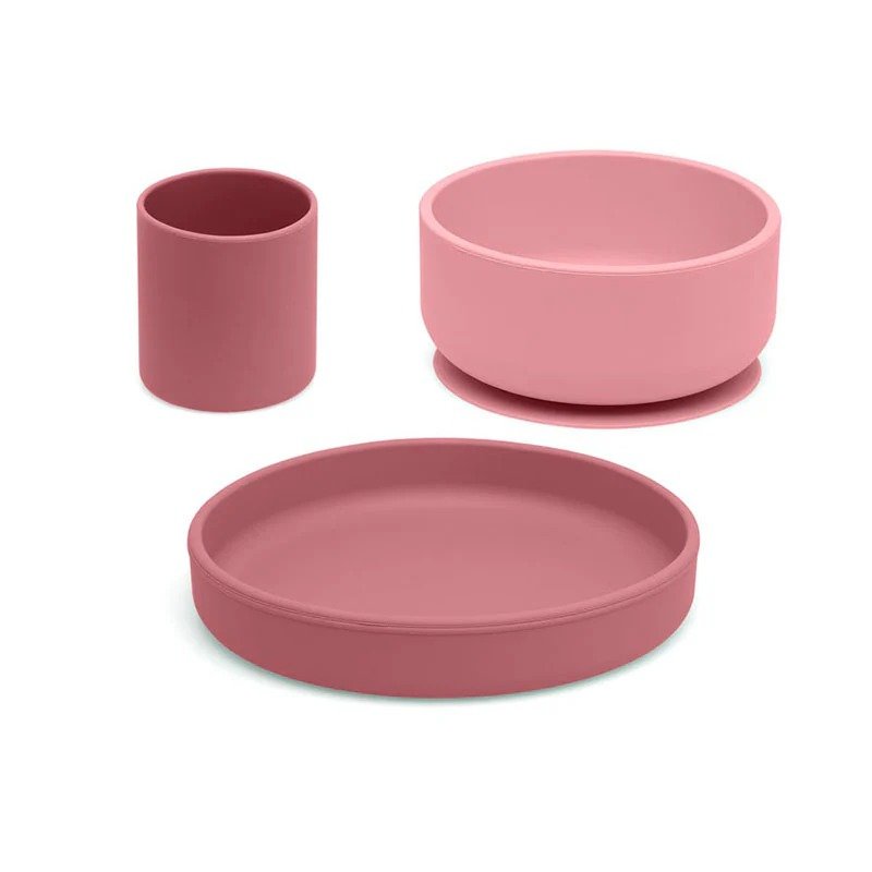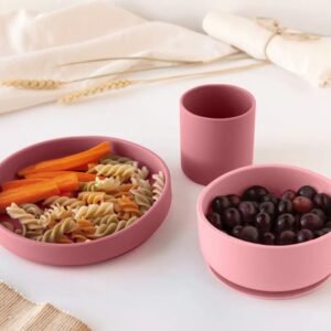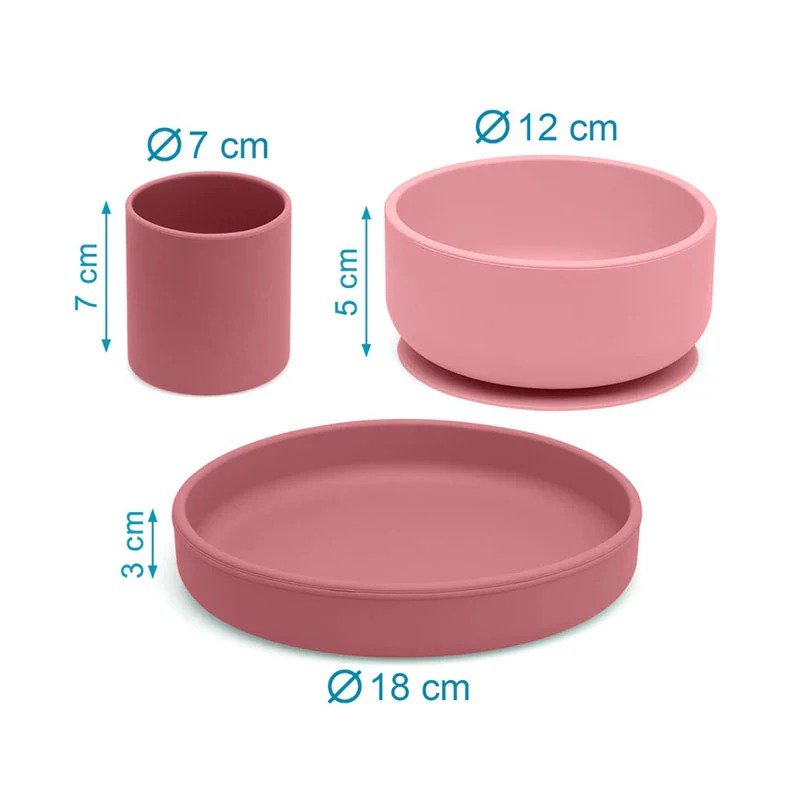 Ανακαλύψτε το ιδανικό σερβίτσιο σιλικόνης που θα κάνει την ώρα του φαγητού την αγαπημένη συνήθεια του παιδιού σας! Το σετ σε απαλό ροζ χρώμα αποτελείται από 1 μπολ, 1 πιάτο και 1 ποτηράκι, ειδικά σχεδιασμένα για να ενθαρρύνουν την αυτονομία του μικρού σας καθώς μαθαίνει να τρώει μόνο του.