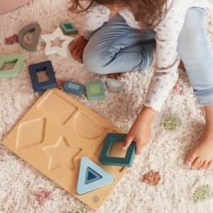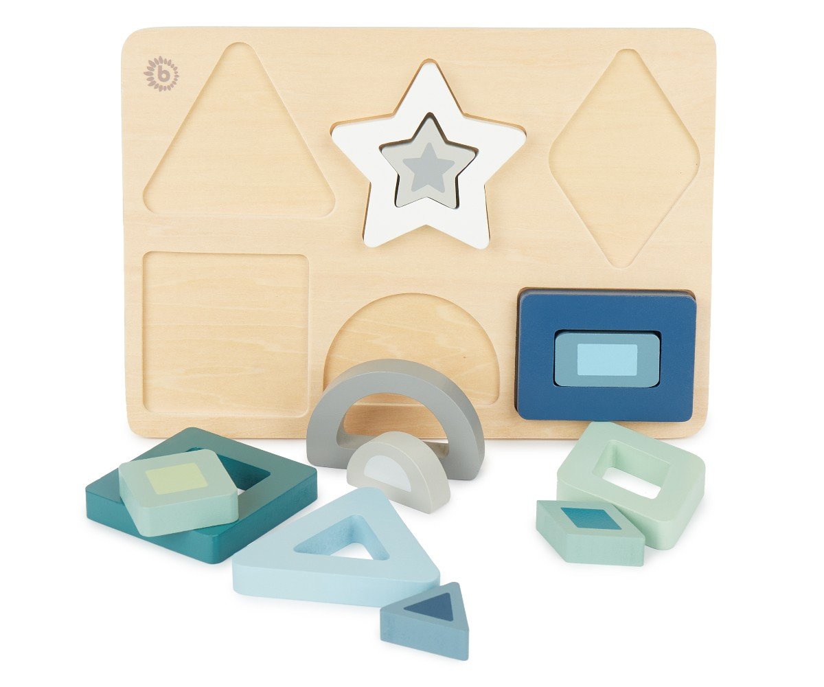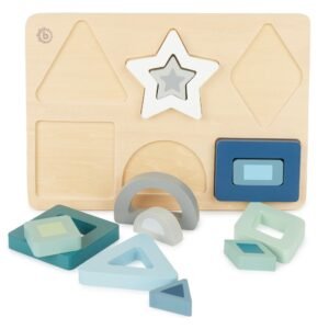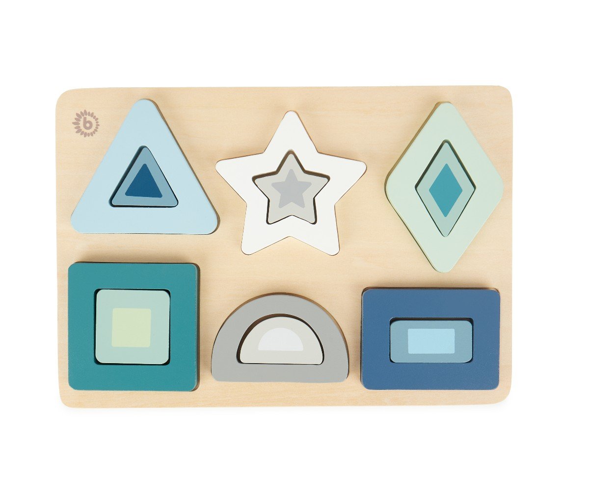 Ανακαλύψτε τον κόσμο των σχημάτων με το ξύλινο puzzle της Bieco, ένα κλασικό παιδαγωγικό εργαλείο σχεδιασμένο για παιδιά από 1 έτους. Αυτό το puzzle δεν είναι απλώς ένα παιχνίδι, αλλά ένας τρόπος για να αναπτύξει το παιδί σας τις πρώτες του δεξιότητες μέσα από τη διασκέδαση. Με 13 διαφορετικά κομμάτια σε υπέροχες αποχρώσεις του μπλε και του πράσινου-γαλάζιου (teal), προσφέρει μια ποιοτική και ασφαλή εμπειρία απασχόλησης.