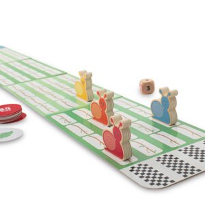 Το BS Toys Παιχνίδι Αγώνας Σαλιγκαριών είναι ένα διασκεδαστικό ξύλινο επιτραπέζιο που προκαλεί την οικογένεια σε έναν πρωτότυπο αγώνα ταχύτητας. Το σετ περιλαμβάνει 4 ξύλινα σαλιγκάρια, 4 σανίδες ταμπλό, 35 κάρτες δράσης και 1 ζάρι. Σχεδιασμένο για να ενισχύει την αναγνώριση αριθμών, τη στρατηγική σκέψη και την ανταγωνιστικότητα, το παιχνίδι προσφέρει συνεχείς ανατροπές, καθώς οι κάρτες μπορούν να αλλάξουν τις θέσεις των παικτών ανά πάσα στιγμή. Κατασκευασμένο από ξύλο και χαρτόνι με την εγγύηση της BS Toys, ο Αγώνας Σαλιγκαριών είναι η ιδανική επιλογή για δημιουργικό παιχνίδι που συνδυάζει την εκπαιδευτική αξία με το χιούμορ και την ομαδικότητα.