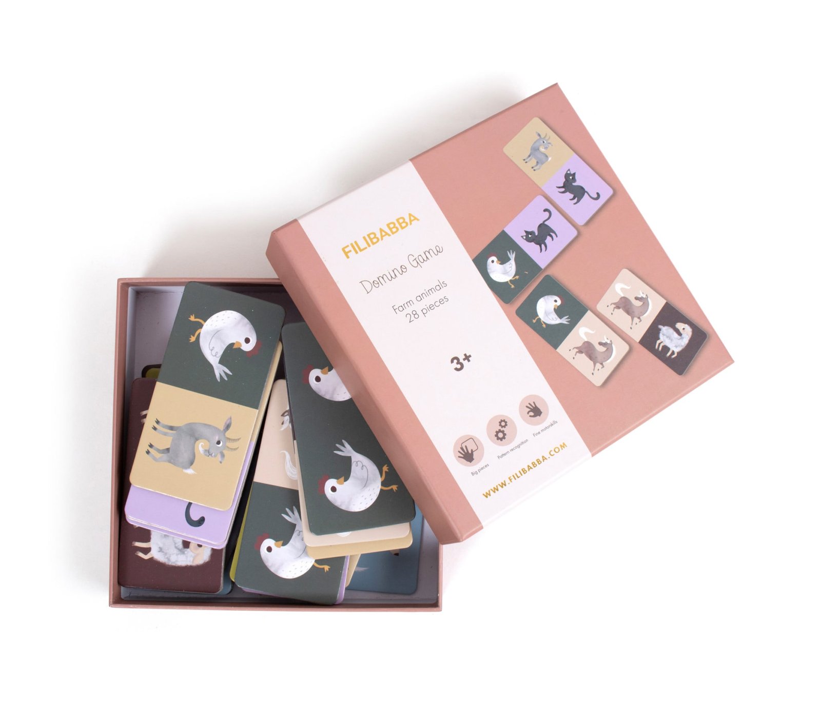 Ενισχύστε την οπτική μνήμη και την ικανότητα αναγνώρισης προτύπων του παιδιού σας με το Domino Farm Animals. Αυτό το διαχρονικό παιχνίδι επιστρέφει με μια υπέροχη, παιδική ματιά, γεμάτη πολύχρωμες και χειροποίητες εικονογραφήσεις με αξιολάτρευτα ζωάκια της φάρμας. Είναι ο ιδανικός τρόπος για να συνδυάσετε τη διασκέδαση με την εκπαιδευτική διαδικασία, προσφέροντας ποιοτικό χρόνο για όλη την οικογένεια.