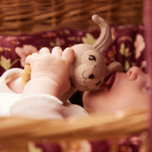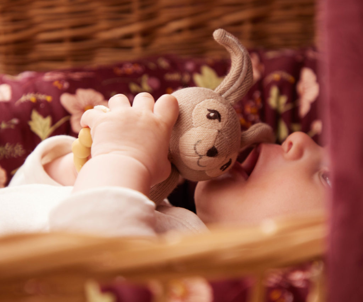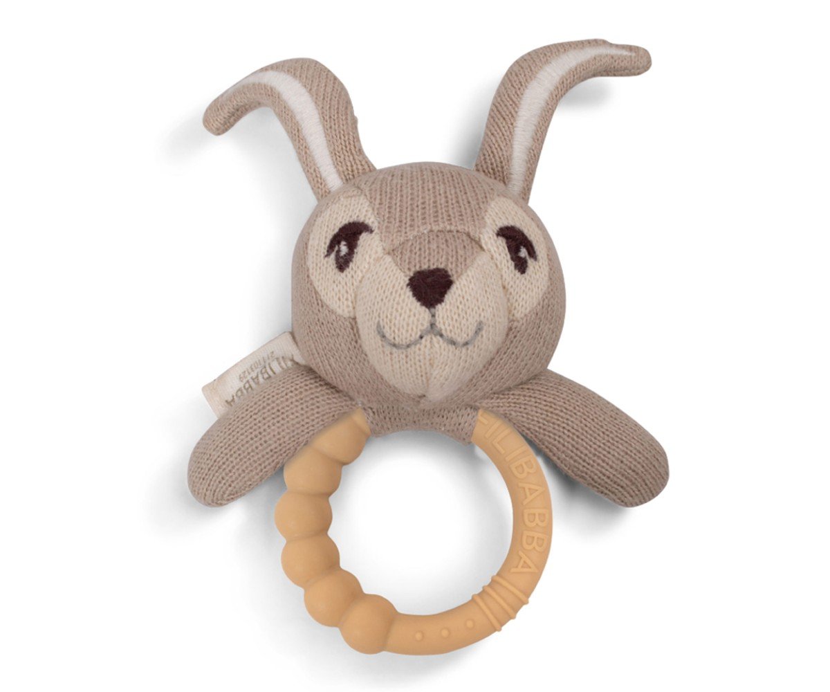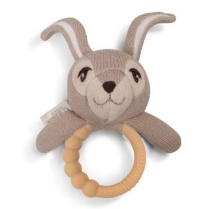 Αυτή η γλυκιά μικρή κουδουνίστρα σε σχήμα ενός χαριτωμένου λαγού είναι κατασκευασμένη από εξαιρετικά μαλακό οργανικό βαμβάκι.