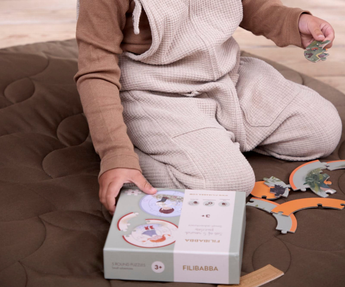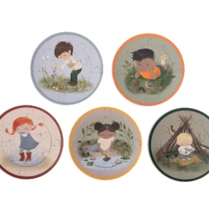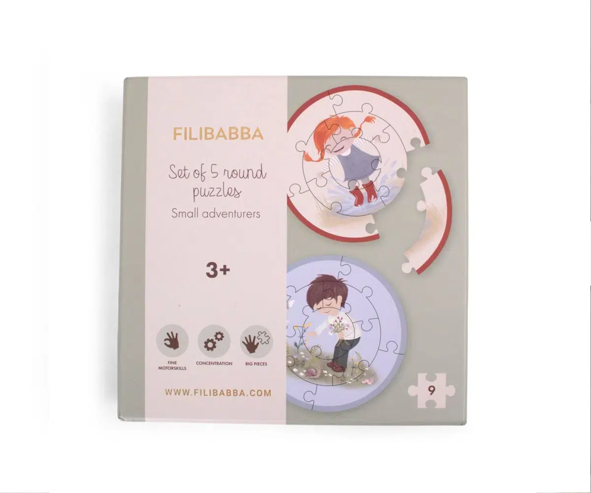 Ανακαλύψτε έναν κόσμο γεμάτο χρώμα και φαντασία με αυτό το μοναδικό σετ που περιλαμβάνει πέντε στρογγυλά παζλ. Σχεδιασμένο για να προσφέρει ατέλειωτες ώρες διασκέδασης, κάθε παζλ απεικονίζει μικρούς, χαρούμενους περιπετειώδεις που θα ενθουσιάσουν το παιδί σας. Ο πρωτότυπος στρογγυλός σχεδιασμός τους ξεφεύγει από τα συνηθισμένα, προσφέροντας μια νέα πρόκληση που εξάπτει την περιέργεια και τη δημιουργικότητα των νηπίων.