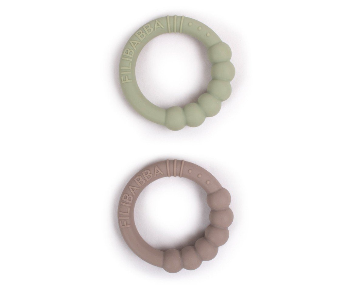 Όταν αρχίζει η περίοδος της οδοντοφυΐας, οι μασητικοί κρίκοι σιλικόνης είναι το απαραίτητο αξεσουάρ για να καταπραΰνετε τα ερεθισμένα ούλα του μωρού σας. Αυτό το πρακτικό σετ δύο τεμαχίων σε κομψές αποχρώσεις Warm Grey και Oil Green συνδυάζει τη λειτουργικότητα με τον σύγχρονο σχεδιασμό, προσφέροντας άμεση ανακούφιση και απασχόληση.