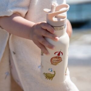 Το Ανοξείδωτο Παγούρι Dino Beach της Filibabba είναι ο ιδανικός σύντροφος για το σχολείο και την εκδρομή. Διαθέτοντας δύο καπάκια (βιδωτό και με καλαμάκι), προσφέρει μέγιστη ευελιξία και ευκολία στη χρήση. Κατασκευασμένο από ανθεκτικό ανοξείδωτο ατσάλι με χωρητικότητα 350ml, διατηρεί τα ροφήματα δροσερά ή ζεστά, ενώ το παιχνιδιάρικο σχέδιο με δεινόσαυρους στην παραλία θα ξετρελάνει κάθε μικρό εξερευνητή. Μια υγιεινή, βιώσιμη και στυλάτη επιλογή για την καθημερινή ενυδάτωση των παιδιών.