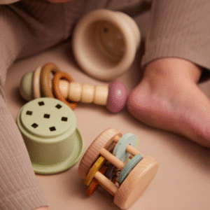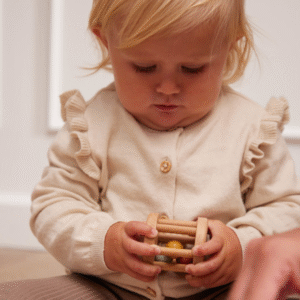 Πολυαισθητηριακά Ερεθίσματα: Τα ξύλινα παιχνίδια διαθέτουν κουδουνάκια και ήχους κουδουνίστρας, καθώς και έντονα χρώματα που μαγνητίζουν την προσοχή του βρέφους, ενισχύοντας την ακουστική και οπτική του αντίληψη.