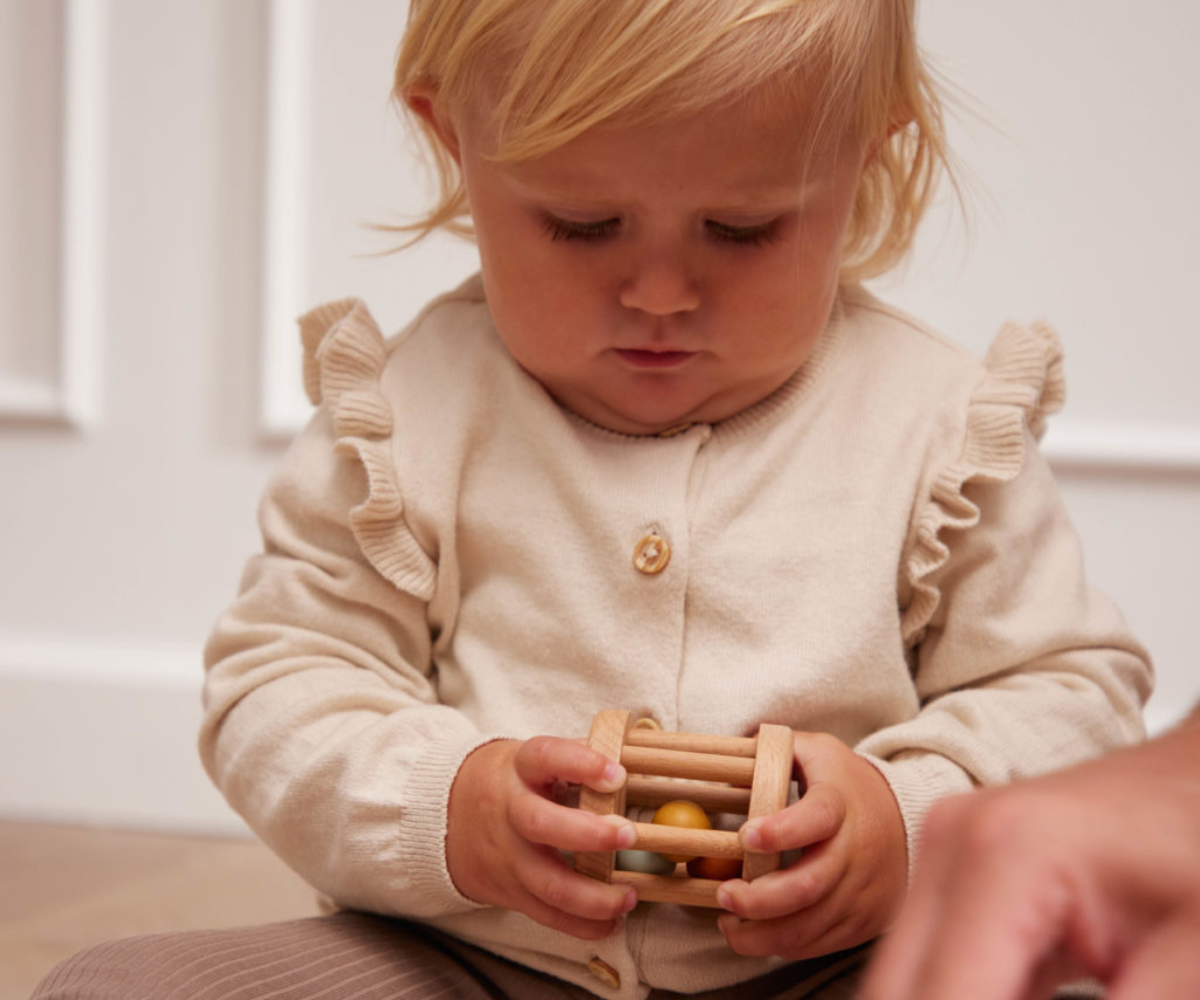 Φυσικά Υλικά: Η χρήση ξύλου οξιάς εξασφαλίζει μια ασφαλή και ζεστή επαφή, ιδανική για τα ευαίσθητα χέρια των μωρών.
