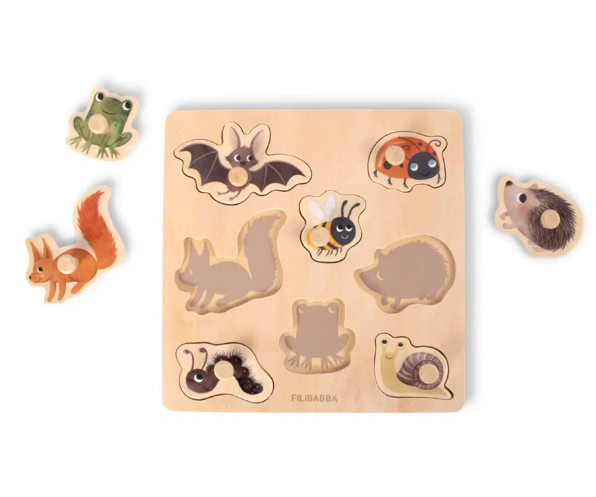 Χαρίστε στο παιδί σας μια πρώτη επαφή με τη φύση μέσα από αυτό το γοητευτικό ξύλινο παζλ 8 τεμαχίων. Με χειροποίητα σχεδιασμένες εικονογραφήσεις που μοιάζουν σχεδόν ζωντανές, το παζλ παρουσιάζει τα πιο αγαπημένα ζωάκια του δάσους. Είναι ειδικά σχεδιασμένο για να κεντρίζει την περιέργεια των μικρών εξερευνητών, προσφέροντας μια διασκεδαστική εκπαιδευτική εμπειρία γεμάτη εκπλήξεις!