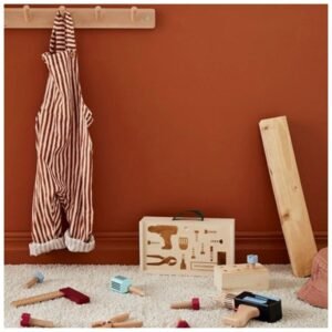 Τα παιδιά λατρεύουν να μιμούνται τους μεγάλους, και τώρα, με την εργαλειοθήκη της Kids Concept, μπορούν να γίνουν οι απόλυτοι μάστορες του σπιτιού! Κατασκευασμένη από πιστοποιημένο ξύλο FSC, αυτή η εργαλειοθήκη προσφέρει μια αυθεντική εμπειρία παιχνιδιού ρόλων, επιτρέποντας στα παιδιά να εξερευνήσουν τον κόσμο των επισκευών με ασφάλεια και δημιουργικότητα. Ο μοναδικός σχεδιασμός του κουτιού με σπειρώματα στο κάτω μέρος επιτρέπει στα παιδιά να βιδώνουν πραγματικά τις βίδες τους, μετατρέποντας το παιχνίδι σε μια ζωντανή εμπειρία κατασκευής.