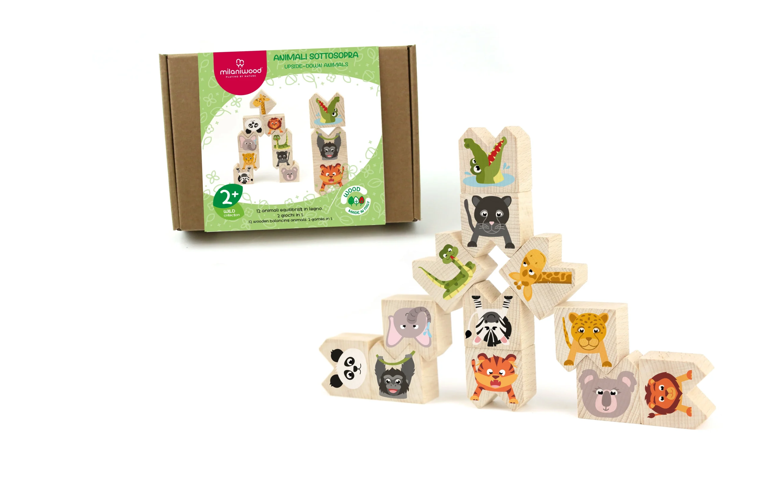 MILANIWOOD Ξύλινο παιχνίδι upside-down – Ζώα της ζούγκλας