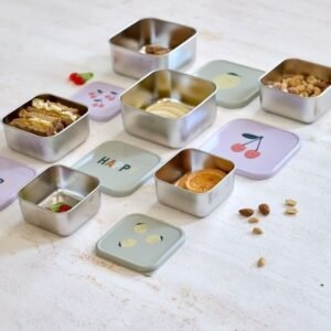 Τα ανοξείδωτα σκεύη αποθήκευσης Happy Fruits της Lässig έρχονται σε ένα πρακτικό σετ 3 τεμαχίων για να δώσουν χρώμα και οργάνωση στο γεύμα του παιδιού. Είναι οι ιδανικοί σύντροφοι για το σχολείο, το νηπιαγωγείο ή τις βόλτες, καθώς προσφέρουν τον κατάλληλο χώρο για φρούτα, λαχανικά, ξηρούς καρπούς ή μικρά σάντουιτς, διατηρώντας τα φρέσκα και λαχταριστά.