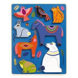 Ανακαλύψτε ένα ζωντανό και καλλιτεχνικό ξύλινο παζλ, σχεδιασμένο ειδικά για να κεντρίζει την περιέργεια των μικρών εξερευνητών ηλικίας 1 έτους και άνω. Με 8 υπέροχα εικονογραφημένα ζωάκια, αυτό το παιχνίδι αποτελεί την ιδανική εισαγωγή στον κόσμο των παζλ, συνδυάζοντας την υψηλή αισθητική με την πρακτική μάθηση.