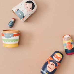 Φέρτε έναν κόσμο αισιοδοξίας και ανάπτυξης στο παιχνίδι του παιδιού σας με το μοναδικό σετ Nesting Dolls της Just Bee Kids. Αυτές οι αξιολάτρευτες ξύλινες φιγούρες δεν είναι απλώς ένα παιχνίδι στοίβαξης, αλλά ένας τρόπος να καλλιεργήσετε την αυτοπεποίθηση και τη θετική σκέψη από μικρή ηλικία. Κάθε χαρακτήρας είναι διακοσμημένος με εμψυχωτικά συνθήματα (uplifting slogans), ενθαρρύνοντας την αυτοέκφραση και τη συναισθηματική νοημοσύνη των παιδιών με τον πιο τρυφερό τρόπο.