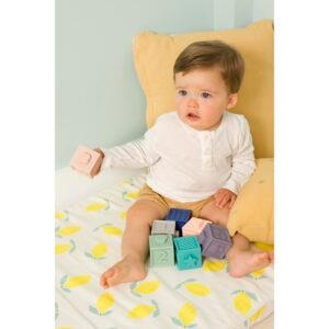 Στοίβαξη & Σύνδεση: Οι κύβοι είναι σχεδιασμένοι να “δένουν” μεταξύ τους, επιτρέποντας στα νήπια να δημιουργούν τις δικές τους σταθερές κατασκευές.