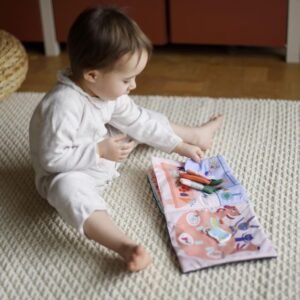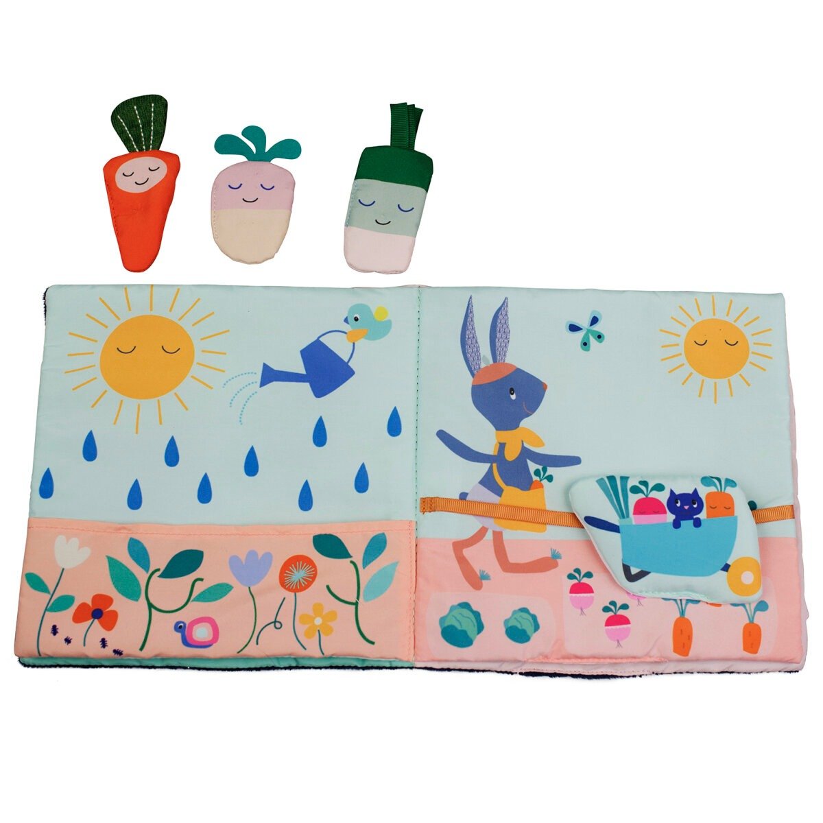 Το διαδραστικό υφασμάτινο βιβλίο «Gabin le Lapin» προσφέρει μια μοναδική εμπειρία μάθησης για παιδιά από 9 μηνών. Μέσα από 8 σελίδες με έντονα χρώματα και διαφορετικές υφές, το παιδί ανακαλύπτει πώς ο Gabin ετοιμάζει γεύματα από το περιβόλι του. Με ήχους τριξίματος και κουδουνάκι, το βιβλίο ενισχύει την αισθητηριακή ανάπτυξη και τη λεπτή κινητικότητα. Κατασκευασμένο από ανθεκτικό πολυεστέρα και με διαστάσεις 20×20 cm, αποτελεί το τέλειο δώρο για μικρούς σεφ που αγαπούν τις ιστορίες, συνδυάζοντας την ψυχαγωγία με την πρώτη επαφή με τις έννοιες της φύσης και της μαγειρικής.