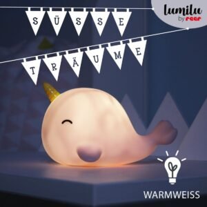 Το νυχτερινό φωτιστικό Narwhal από τη σειρά lumilu της reer είναι σχεδιασμένο για να διώχνει τον φόβο του σκοταδιού και να δημιουργεί μια ζεστή ατμόσφαιρα στο παιδικό δωμάτιο. Με τον χαριτωμένο σχεδιασμό του και την υψηλή ποιότητα κατασκευής, αποτελεί την τέλεια προσθήκη για κάθε βρεφικό ή παιδικό δωμάτιο.