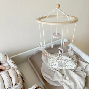 Το ξύλινο κρεμαστό διακοσμητικό της Cam Cam με τα γλυκά κουνελάκια προσφέρει μια τρυφερή και ποιητική αίσθηση στο δωμάτιο του μωρού σας. Με τον εκλεπτυσμένο σχεδιασμό του, αποτελεί μια γοητευτική προσθήκη πάνω από την κούνια ή την αλλαξιέρα, μετατρέποντας τις καθημερινές στιγμές σε μια ονειρική εμπειρία.