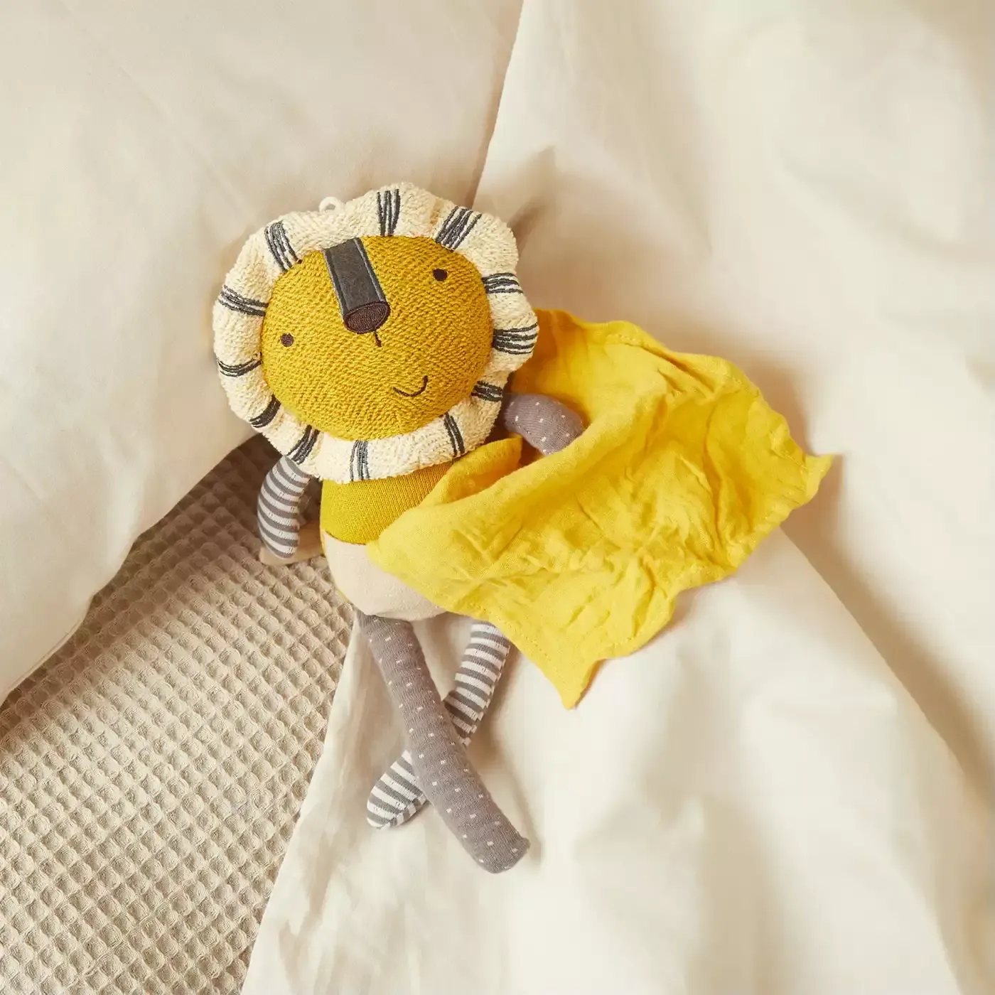 Αυτό το μικρό λιονταράκι αποτελεί μια φανταστική ιδέα δώρου για νεογέννητα και νήπια. Είναι ένα “κουκλάκι παρηγοριάς” (doudou) που θα χαρίσει χαμόγελα σε μικρούς και μεγάλους, συνδυάζοντας την αντοχή του πλεκτού βαμβακιού με τη μαλακή γέμιση πολυεστέρα.