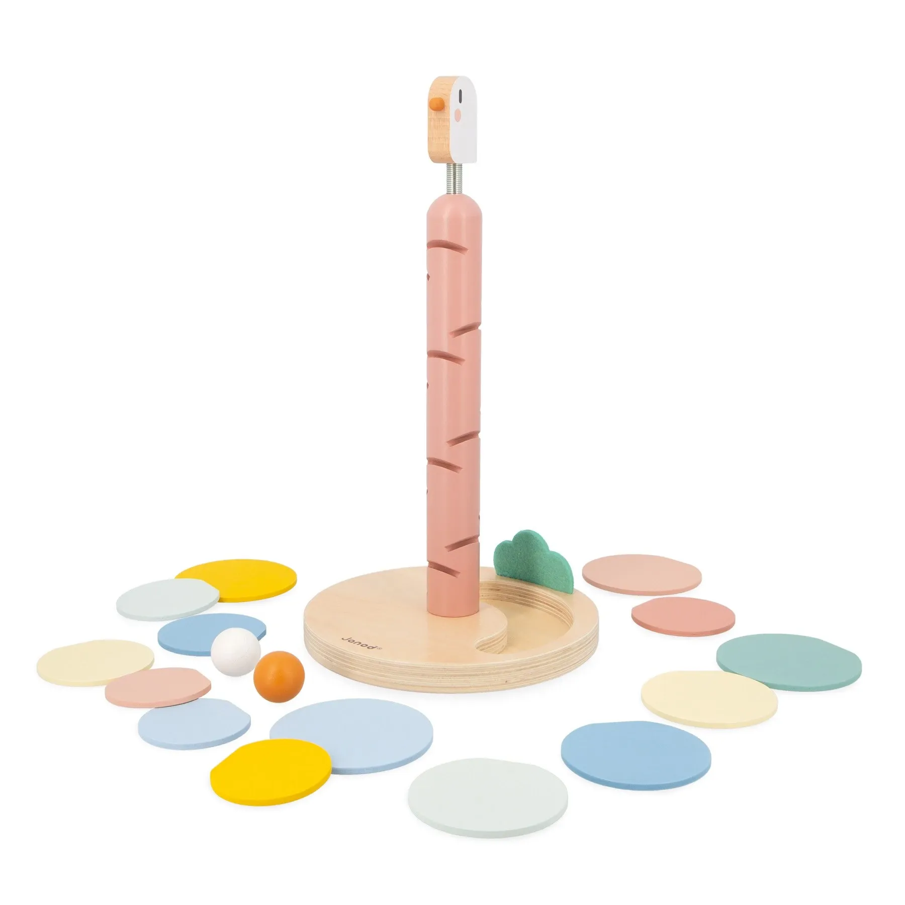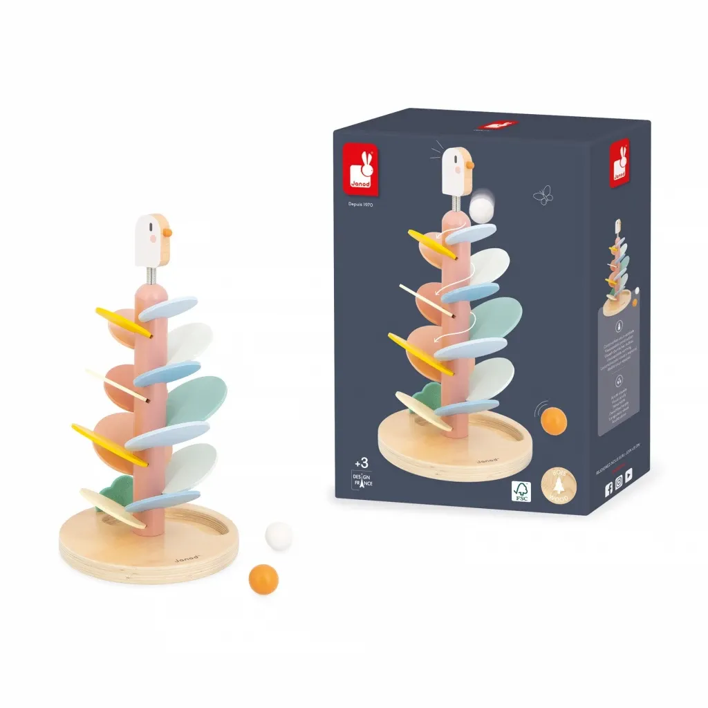 Αυτό το μοναδικό ξύλινο παιχνίδι προσφέρει μια συναρπαστική εμπειρία που συνδυάζει την κατασκευή με την κίνηση. Αποτελείται από μια σταθερή βάση και έναν κεντρικό «κορμό», στον οποίο το παιδί καλείται να συναρμολογήσει 14 πολύχρωμα ξύλινα φύλλα διαφορετικών μεγεθών. Η διαδικασία της κατασκευής και η παρακολούθηση της διαδρομής της μπάλας μαγεύουν τα παιδιά, κρατώντας το ενδιαφέρον τους αμείωτο.