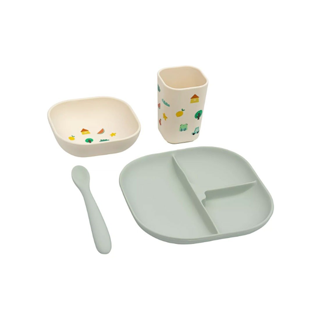 Incassable & Durable: Η σιλικόνη είναι εξαιρετικά ανθεκτική και άθραυστη, διασφαλίζοντας ότι το σετ θα αντέξει ακόμα και στις πιο απότομες πτώσεις από το καρεκλάκι φαγητού.