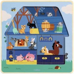 Ανακαλύψτε τα μυστικά της φάρμας με το πρωτοποριακό Ξύλινο Παζλ Ανακάλυψης της Djeco. Αυτό το μοναδικό παζλ 3 επιπέδων προσκαλεί τα παιδιά να εξερευνήσουν τη ζωή στον αχυρώνα με έναν διαδραστικό τρόπο. Καθώς το παιδί αφαιρεί ή τοποθετεί τα κομμάτια, αποκαλύπτονται σταδιακά διαφορετικές σκηνές, κάνοντας τη διαδικασία της σύνθεσης μια συνεχή περιπέτεια ανακάλυψης.