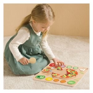 Δημιουργική Σύνθεση: Τα παιδιά μπορούν να τοποθετήσουν τα διάφορα toppings (υλικά) πάνω στη βάση της πίτσας, μαθαίνοντας να αναγνωρίζουν σχήματα και χρώματα μέσα από τη διαδικασία των σφηνωμάτων.