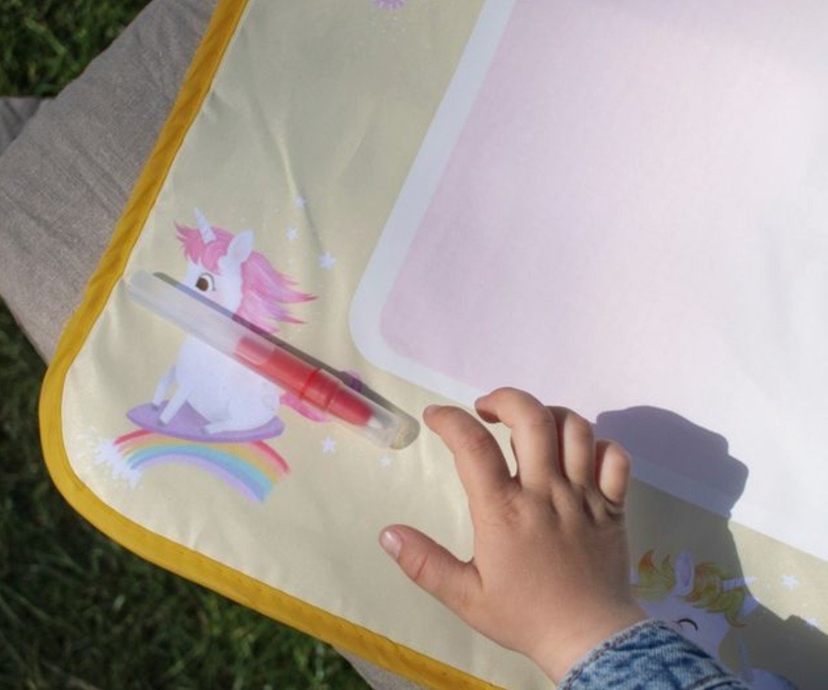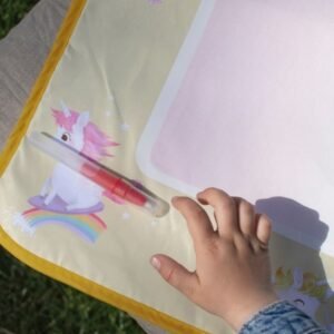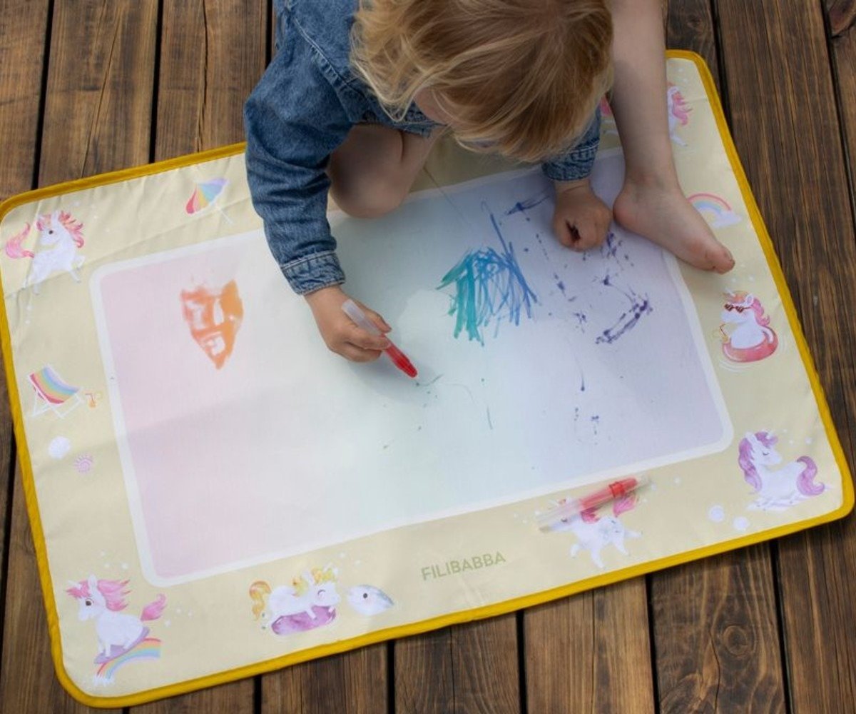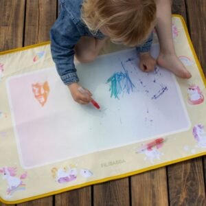 Ανακαλύψτε έναν κόσμο δημιουργικότητας όπου τα χρώματα ανθίζουν σαν μαγεία! Το χαλάκι ζωγραφικής με νερό Unicorn Shores της Filibabba προσφέρει στους μικρούς καλλιτέχνες μια ονειρική εμπειρία απασχόλησης. Χωρίς την ανάγκη για μπογιές, μελάνια ή κηρομπογιές, τα παιδιά μπορούν να εκφραστούν ελεύθερα πάνω στη μεγάλη επιφάνεια, ενώ εσείς απολαμβάνετε την ηρεμία ενός παιχνιδιού χωρίς λεκέδες και ακαταστασία στο σπίτι.